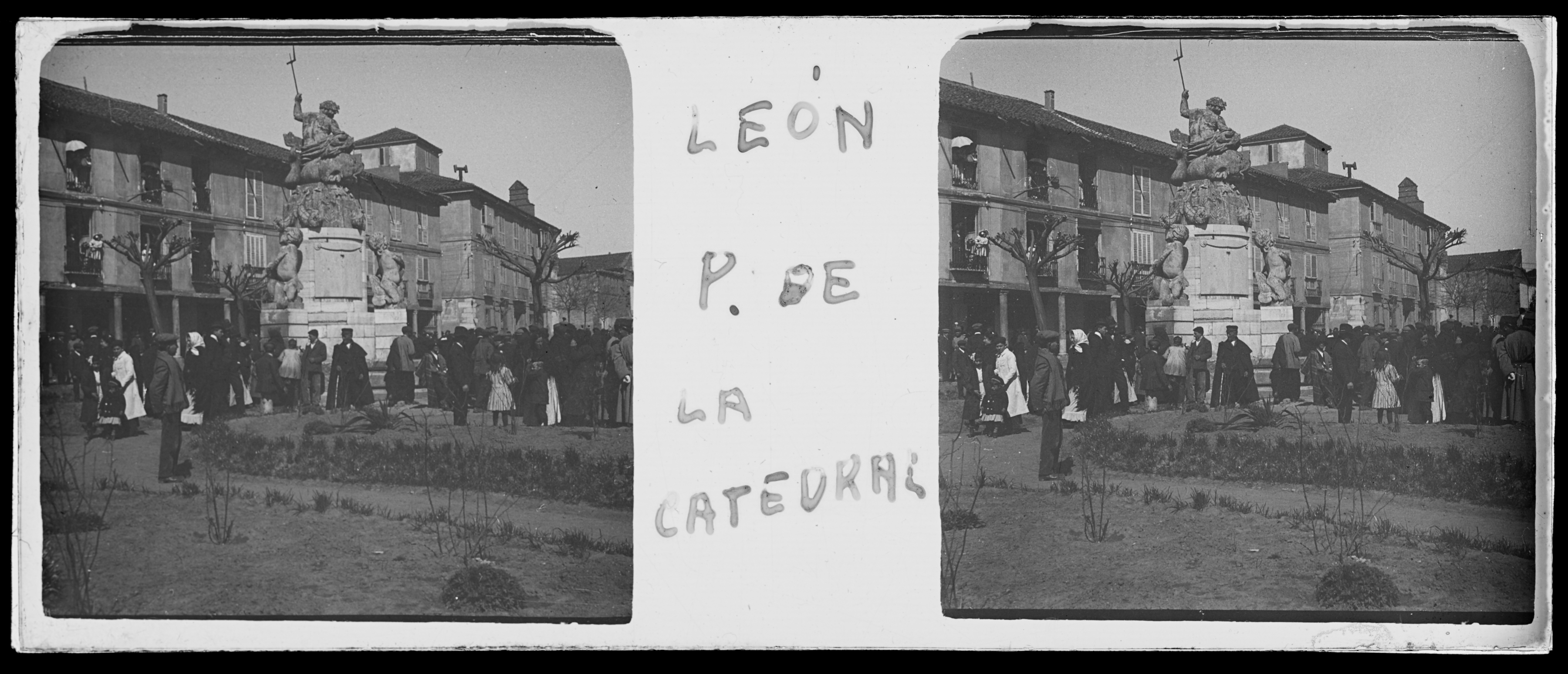 Congregació de gent a la plaça de la catedral de León