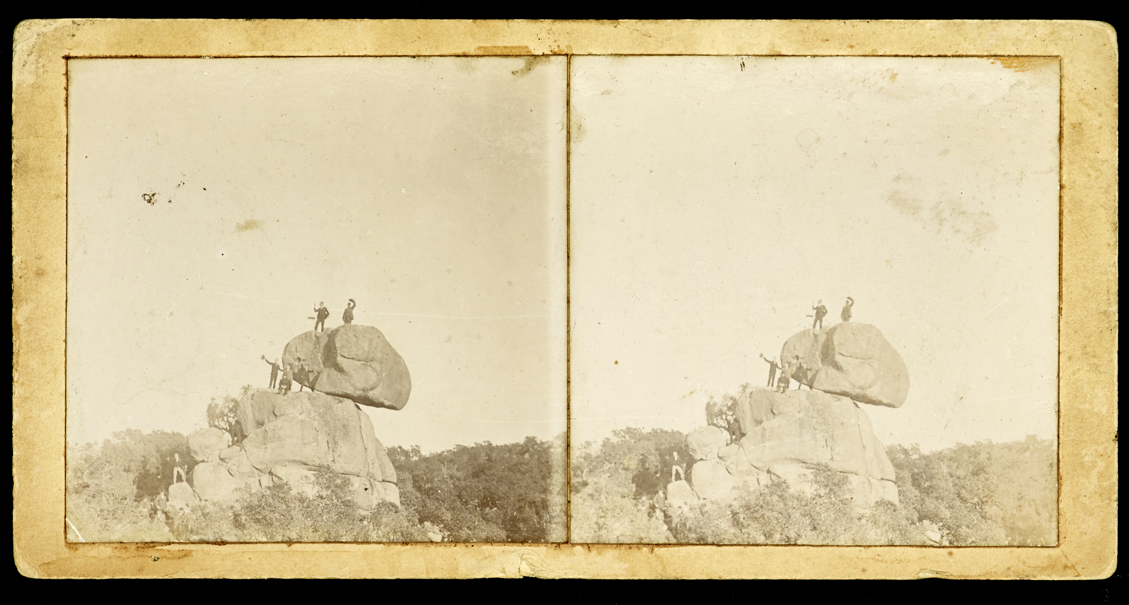 La pedra oscil·lant de Pedralta amb gent enfilada