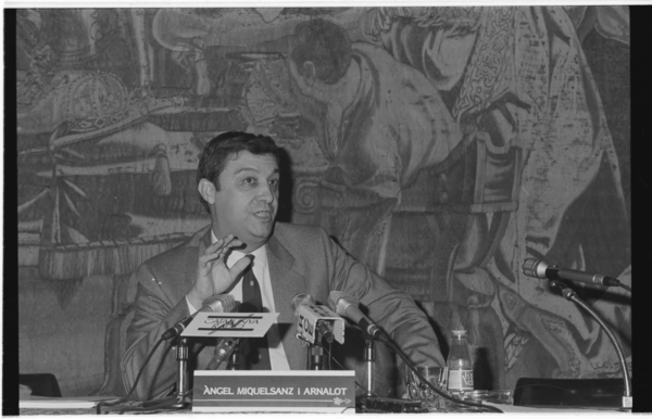 Ponències d'Arseni Gibert i Bosch, diputat de Catalunya, Àngel Miguelsanz i Arnalot, a les jornades "Perspectives de Futur de les Comarques Gironines" a la Fontana d'Or de Girona, actual seu del Caixaforum.