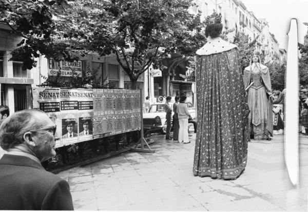 Ambient electoral amb els cartells de propaganda a la Rambla de la Llibertat de Girona Codi IF-1090233 Fons Fons Martí Calvo Autor Martí Calvo, Sebastià Data 01/06/1977 - 30/06/1977 Descripció Ambient electoral amb els cartells de propaganda a la Rambla de la Llibertat de Girona. Cercavila de gegants i capgrossos. Municipi Girona Comarca Gironès Detentor de drets Diputació de Girona Crèdit MARTÍ CALVO, Sebastià. Fons Martí Calvo. INSPAI. Diputació de Girona. Llicència Aquesta obra està subjecta a una llicència de Reconeixement-NoComercial-SenseObraDerivada 4.0 Internacional de Creative Commons. Afegeix a la cistella Veure el reportatge ANTERIOR SEGÜENT