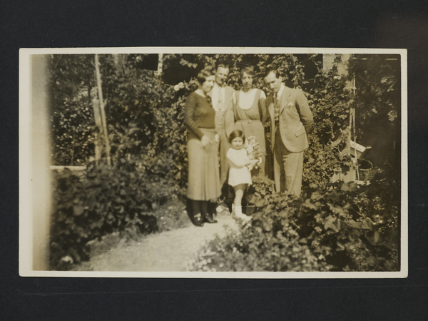 El matrimoni Josep Fontbernat, a l'esquerra, i la seva dona, Simone Hilaire, amb la seva filla gran Josette, al jardí de la finca dels seus padrins a Niça.