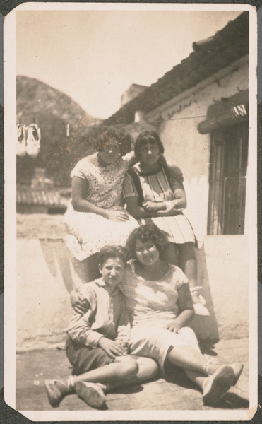 Retrat de grup. d'esquerra a dreta: Antoni Peya Pagès, Flora Pagès Quirós, a darrera Maria Teresa Pagès Quirós i Pilar Elias Pagès a la terrassa del domicili familiar de L'Estartit, cos sencer. Antoni Peya Pagès / Flora Pagès Quirós / Maria Teresa Pagès Quirós / Pilar Elias Pagès