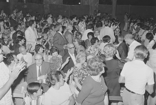 Activitats diverses d'animació al camping Riembau de Platja d'Aro. Retrats de turistes, grups de participants i públic assistent a diferents activitats: competicions esportives, entrega de premis, etc.
