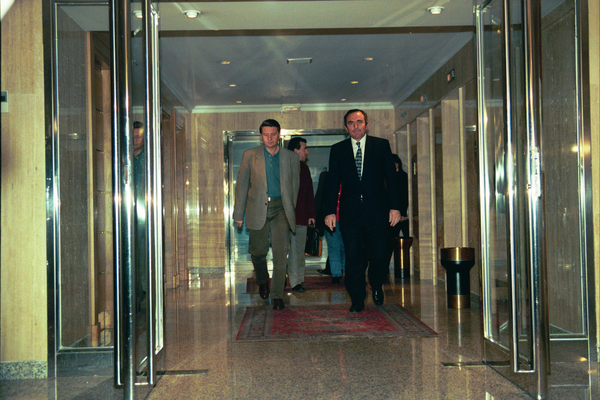 Trobada entre els agents socials. Els líders dels principals sindicats, Antonio Gutiérrez de CCOO i Cándido Méndez d'UGT es reuneixen amb el president de la CEOE, José María Cuevas