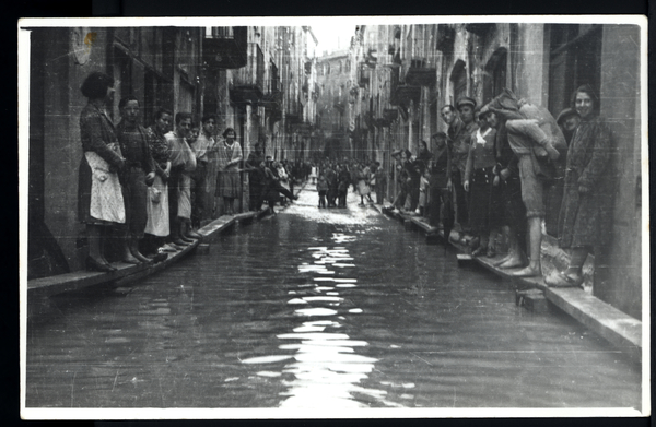 Inundació de Banyoles a causa del desbordament de l'estany. Carrer Major inundat, amb habitants Codi IF-54560 Fons Fons Rafael Vilarrubias Autor Vilarrubias Ros, Rafael Data 13/12/1932 - 20/12/1932 Descripció Carrer Major inundat, amb habitants sobre taulons de fusta. Municipi Banyoles Comarca Pla de l'Estany Crèdit VILARRUBIAS ROS, Rafael. Fons Rafael Vilarrubias. INSPAI. Diputació de Girona. Llicència Aquesta obra està subjecta a una llicència de Reconeixement-NoComercial-SenseObraDerivada 4.0 Internacional de Creative Commons. Afegeix a la cistella Veure el reportatge ANTERIOR SEGÜENT