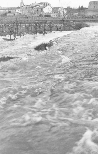 Inundació de Banyoles a causa del desbordament de l'estany. Camps inundats.