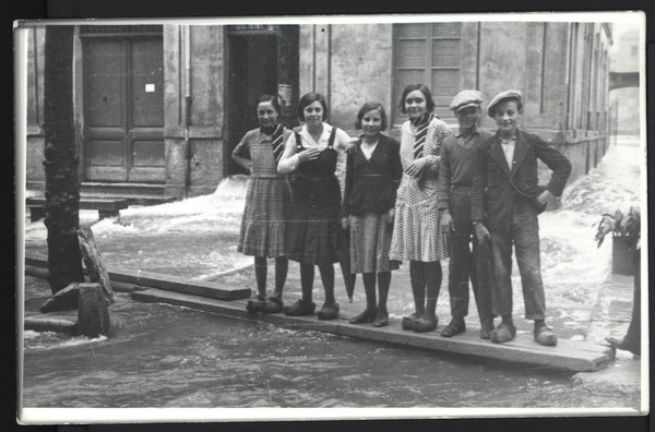 Inundació de Banyoles a causa del desbordament de l'estany. Placeta dels Estudis