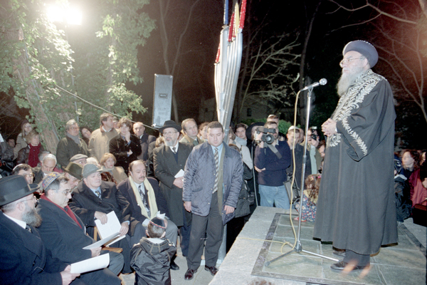 Celebració de la festivitat jueva de la "Hanuka" als Jardins dels Alemanys: cerimònia de recitar les tres benediccions, pregaria, cant del "Maz'oz Tsur" i lectura del salm 30 de David. Cerimònia presidida pel gran rabí Elianhu Bakshi Doron. Acte presentat per Mario Offenberg, director general de la Comunitat Israelita de Berlín, i amb la presència de Carlos Schorr, president de les Federacions Israelites d'Espanya, i de Joaquim Nadal, alcalde de Girona.