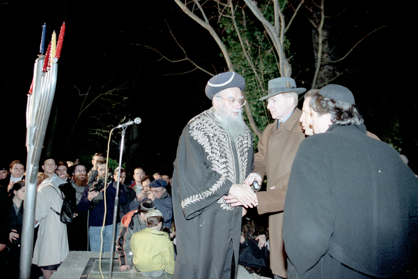 Celebració de la festivitat jueva de la "Hanuka" als Jardins dels Alemanys: cerimònia de recitar les tres benediccions, pregaria, cant del "Maz'oz Tsur" i lectura del salm 30 de David. Cerimònia presidida pel gran rabí Elianhu Bakshi Doron. Acte presentat per Mario Offenberg, director general de la Comunitat Israelita de Berlín, i amb la presència de Carlos Schorr, president de les Federacions Israelites d'Espanya, i de Joaquim Nadal, alcalde de Girona.