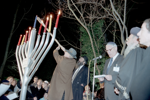 Celebració de la festivitat jueva de la "Hanuka" als Jardins dels Alemanys: cerimònia de recitar les tres benediccions, pregaria, cant del "Maz'oz Tsur" i lectura del salm 30 de David. Cerimònia presidida pel gran rabí Elianhu Bakshi Doron. Acte presentat per Mario Offenberg, director general de la Comunitat Israelita de Berlín, i amb la presència de Carlos Schorr, president de les Federacions Israelites d'Espanya, i de Joaquim Nadal, alcalde de Girona.