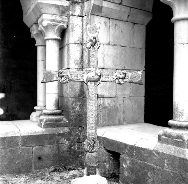 Creu gòtica de la canònica de Santa Maria de Vilabertran. Es tracta de la creu d'orfebreria més gran de Catalunya, amb un ànima de fusta i ornamentació de pedres precioses. Presenta a l'anvers la imatge del Crist, amb figures més petites entre les quals la Mare de Déu i Sant Joan, i al revers l'Agnus Dei i els emblemes del Tetramorf.