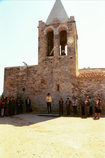 Església dels Sants Metges a Sant Julià de Ramis. Obres de restauració i inauguració amb les autoritats i gent del poble, entre els quals, la directora dels Serveis Territorials de Cultura de la Generalitat de Catalunya a Girona, Natàlia Molero, i el cap del servei de Monuments de la Diputació de Girona, Lluís Bayona.