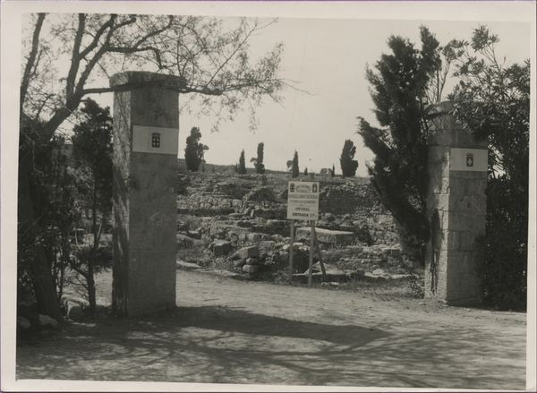 Accés a les Ruïnes d'Empúries Codi IF-651079 Fons Fons de la Diputació de Girona Data 01/01/1940 - 31/12/1979 Descripció Vista general de l'accés al jaciment arqueològic de les Ruïnes d'Empúries. A l'interior, podem veure part de les excavacions al jaciment. Municipi l'Escala Comarca Alt Empordà
