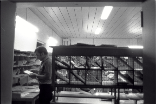 Interior i exterior de la oficina de Correus de Girona, apareixen bústies de paret i bústies de peu retirades pel mal estat, gent que surt de l'oficina, dos carters al carrer i el departament de distribució. Entrevista del periodista Jaume Planas al responsable de correus.