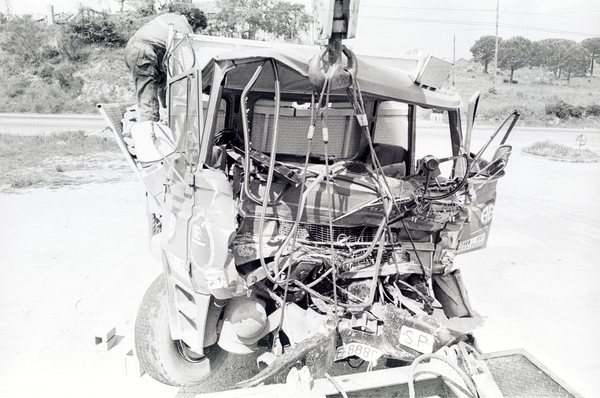 Accident de trànsit Codi IF-76671 Fons Fons Joan Comalat Autor Comalat i Vilà, Joan Data 01/05/1980 - 21/05/1980 Descripció Camió que ha estat aixefat en un accident de trànsit. Municipi Desconegut Comarca Desconegut Detentor de drets Joan Comalat Crèdit COMALAT I VILÀ, Joan. Fons Joan Comalat. INSPAI. Diputació de Girona. Llicència Aquesta obra està subjecta a una llicència de Reconeixement-NoComercial-SenseObraDerivada 4.0 Internacional de Creative Commons. Afegeix a la cistella Veure el reportatge ANTERIOR SEGÜENT