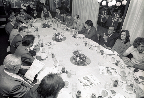 Àpat d'inauguració del XIX Festival Internacional de Cinema de la Costa Brava a Sant Feliu de Guíxols, amb la presència de Josep Vicente Romà, alcalde de Sant Feliu de Guíxols i el polític Josep López de Lerma (CiU).