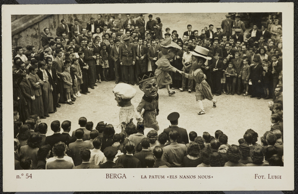Ball dels Nans Nous a la plaça Sant Pere en motiu de la festivitat de la Patum de Berga Codi IF-893184 Fons Col·lecció Josep Maria Vila Autor Foto Luigi Data 01/01/1940 - 31/12/1950 Descripció Ball dels Nans Nous a la plaça Sant Pere en motiu de la festivitat de la Patum de Berga, amb gent a la plaça. Municipi Berga Comarca Berguedà Crèdit FOTO LUIGI. Col·lecció Josep Maria Vila. INSPAI. Diputació de Girona. Llicència Aquesta obra està subjecta a una llicència de Reconeixement-NoComercial-SenseObraDerivada 4.0 Internacional de Creative Commons. Afegeix a la cistella ANTERIOR SEGÜENT