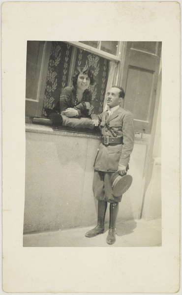 Retrat d'una parella, ella en una finestra i el noi a sota vestit de militar Codi IF-918476 Fons Fons Lobo Serra Batlle Autor Autoria desconeguda Data 01/01/1920 - 31/12/1935 Descripció Retrat d'una parella, ella en una finestra i el noi a sota, al carrer, vestit de militar, cos sencer. Municipi Desconegut Comarca Desconegut Crèdit AUTORIA DESCONEGUDA. Fons Lobo Serra Batlle. INSPAI. Diputació de Girona. Llicència Aquesta obra està subjecta a una llicència de Reconeixement-NoComercial-SenseObraDerivada 4.0 Internacional de Creative Commons. Afegeix a la cistella SEGÜENT