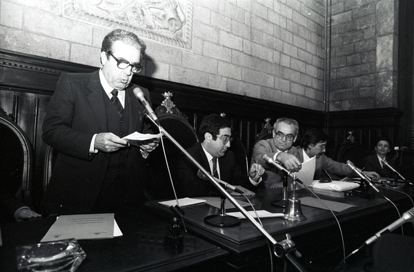 Acte d'agermanament de la Reggio Emilia amb la ciutat de Girona Codi IF-93368 Fons Fons Joan Comalat Autor Comalat i Vilà, Joan Data 06/11/1982 - 06/11/1982 Descripció Acte d'agermanament de la Reggio Emilia amb la ciutat de Girona al saló de plens de l'ajuntament. Municipi Girona Comarca Gironès Detentor de drets Joan Comalat Crèdit COMALAT I VILÀ, Joan. Fons Joan Comalat. INSPAI. Diputació de Girona. Llicència Aquesta obra està subjecta a una llicència de Reconeixement-NoComercial-SenseObraDerivada 4.0 Internacional de Creative Commons. Afegeix a la cistella Veure el reportatge ANTERIOR SEGÜENT